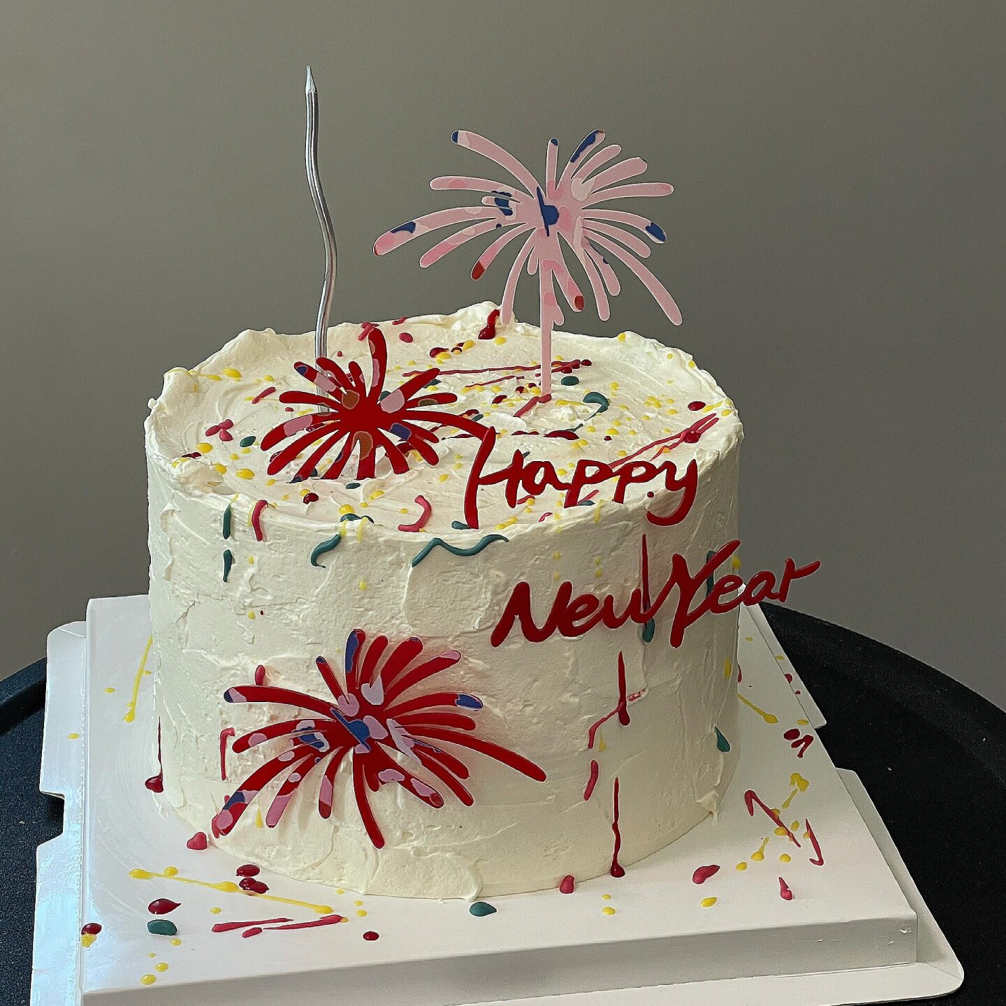 📚 2026新年快乐礼花亚克力蛋糕装饰插件元旦跨年除夕夜甜品烘焙装扮