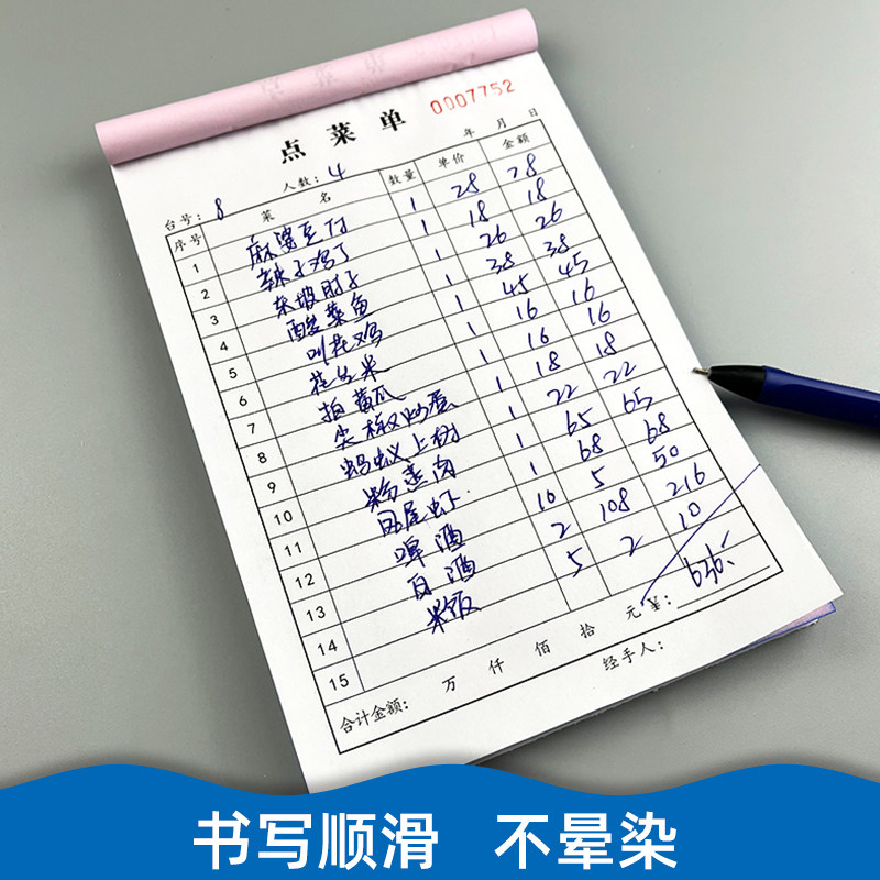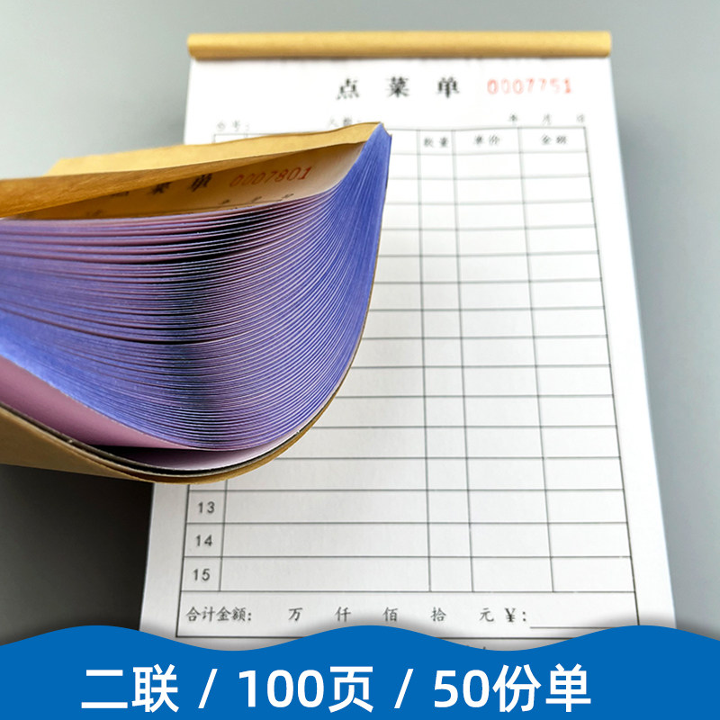 📚 100页点菜单二联饭店餐厅手写空白菜单本两联加菜单2连烧烤记菜纸