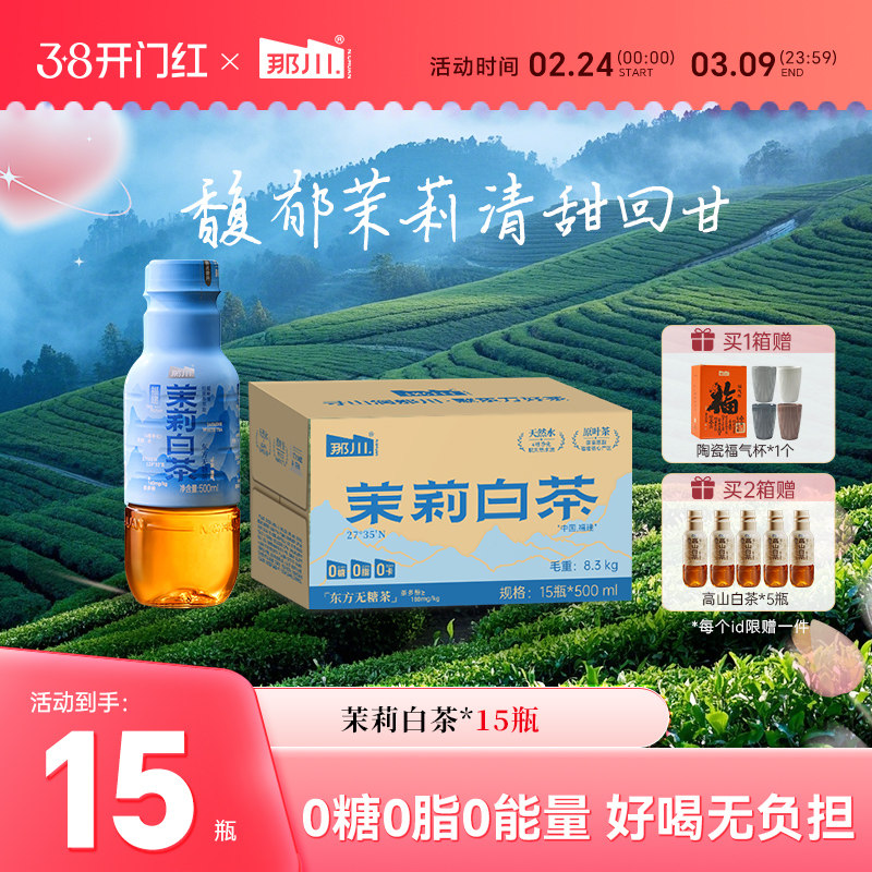 📚 那川茉莉白茶 无糖纯茶饮料原叶萃取0糖0脂0卡饮品500ml*15瓶整箱