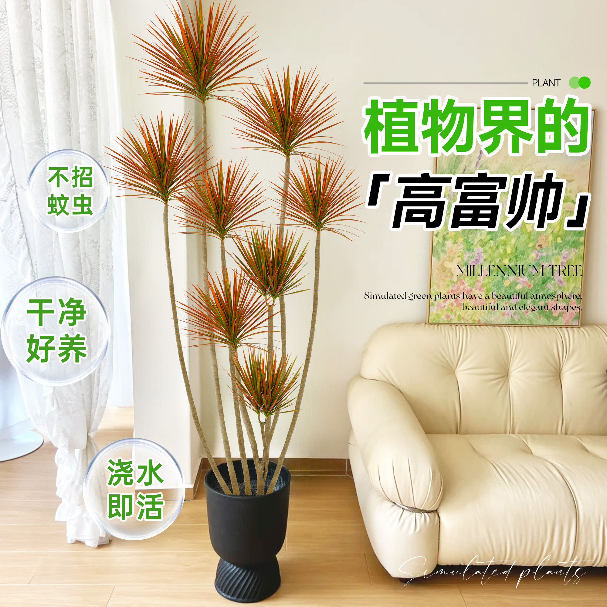 📚 千年木客厅绿植高级感室内大型盆栽植物好养七彩铁龙血树造景真树