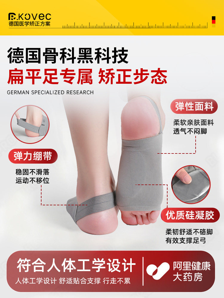 📚 德国品牌扁平足矫正脚垫足弓支撑鞋垫横弓塌陷脚心垫女硅胶足弓袜
