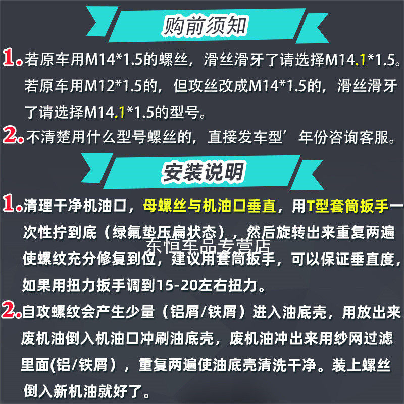 📚 汽车油底壳滑丝修复免攻丝自攻加大中心放油螺丝油底壳螺纹修复