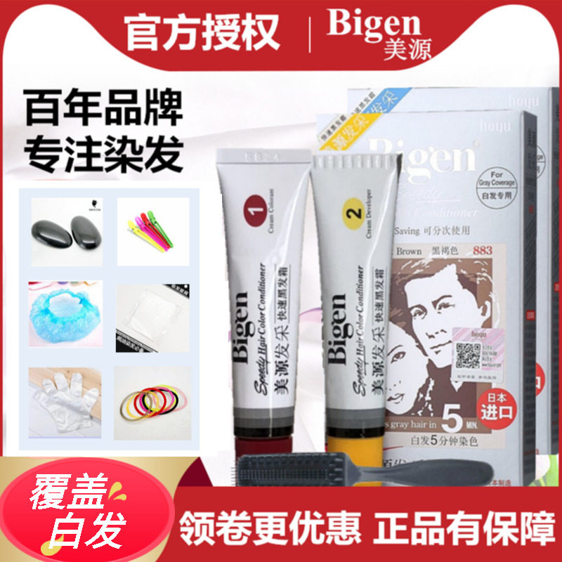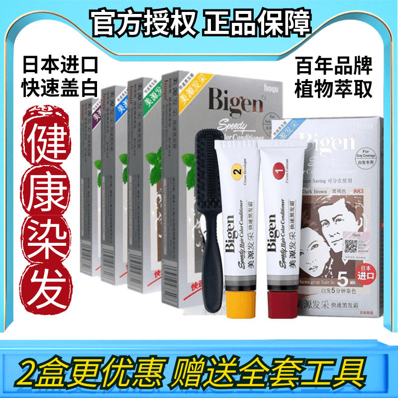📚 日本进口原装美源发采植物纯染发剂天然遮盖白发自然一梳黑染发膏
