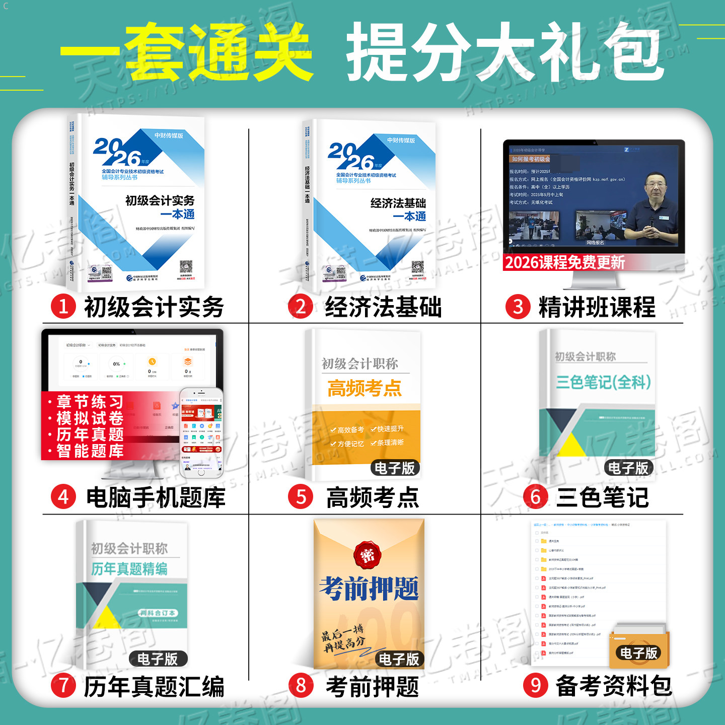 📚 财政部官方初级会计2026年过关一本通实务和经济法基础教材书真题26会计师职称考试三色笔记2025初会章节练习题刷题初快必刷题轻一