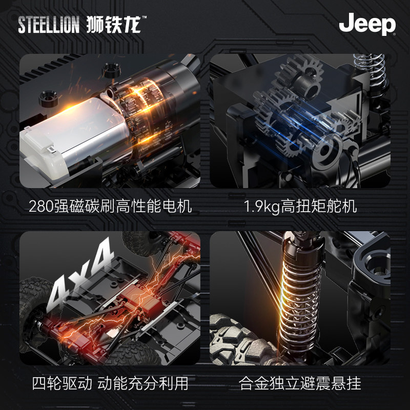 📚 狮铁龙jeep四驱攀爬越野rc遥控车模型1:14仿真大脚赛车男孩玩具