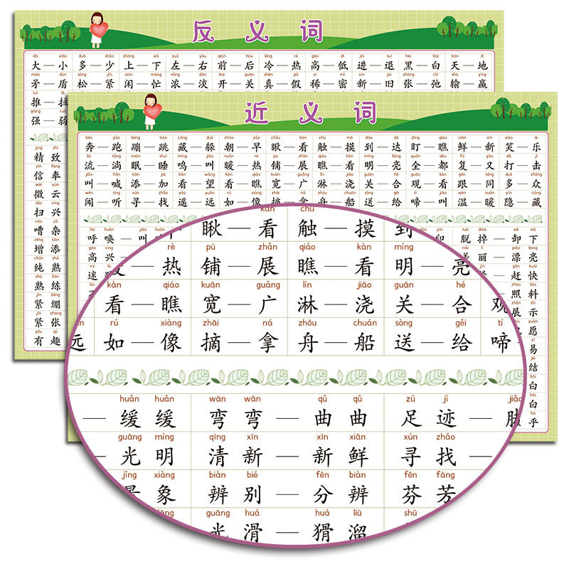 📚 小学语文基础标点关联修辞易错字词换偏旁近反义词文学知挂图墙贴