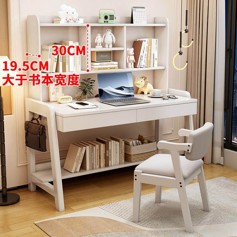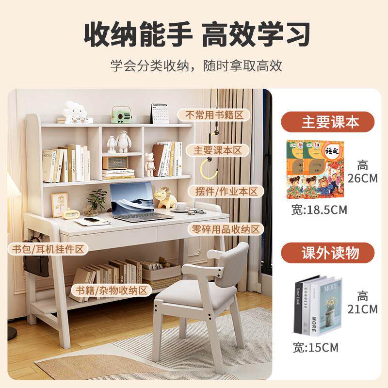 📚 实木书桌书架一体家用小孩可升降学习桌卧室初高中生书桌电脑桌