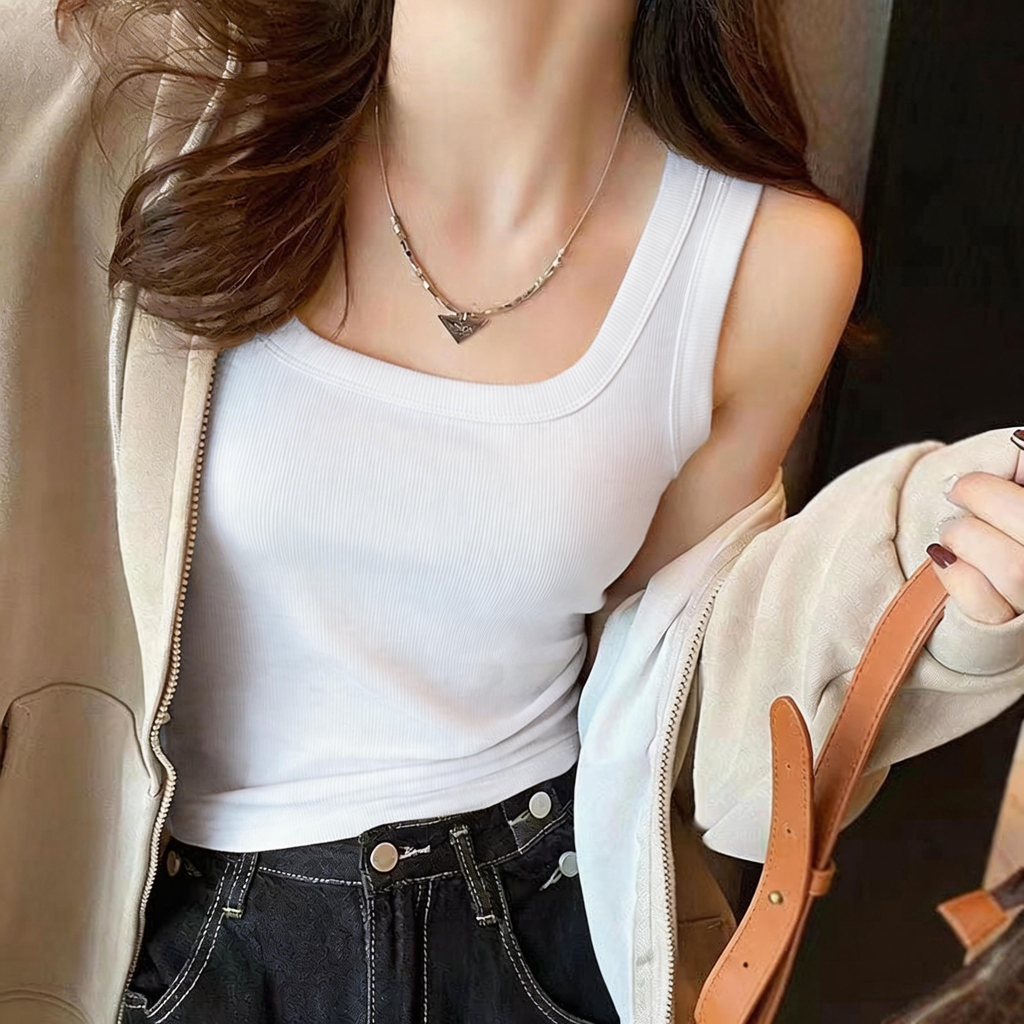 📚 纯棉方领吊带背心女士2026新款春秋白色内搭外穿修身螺纹打底上衣