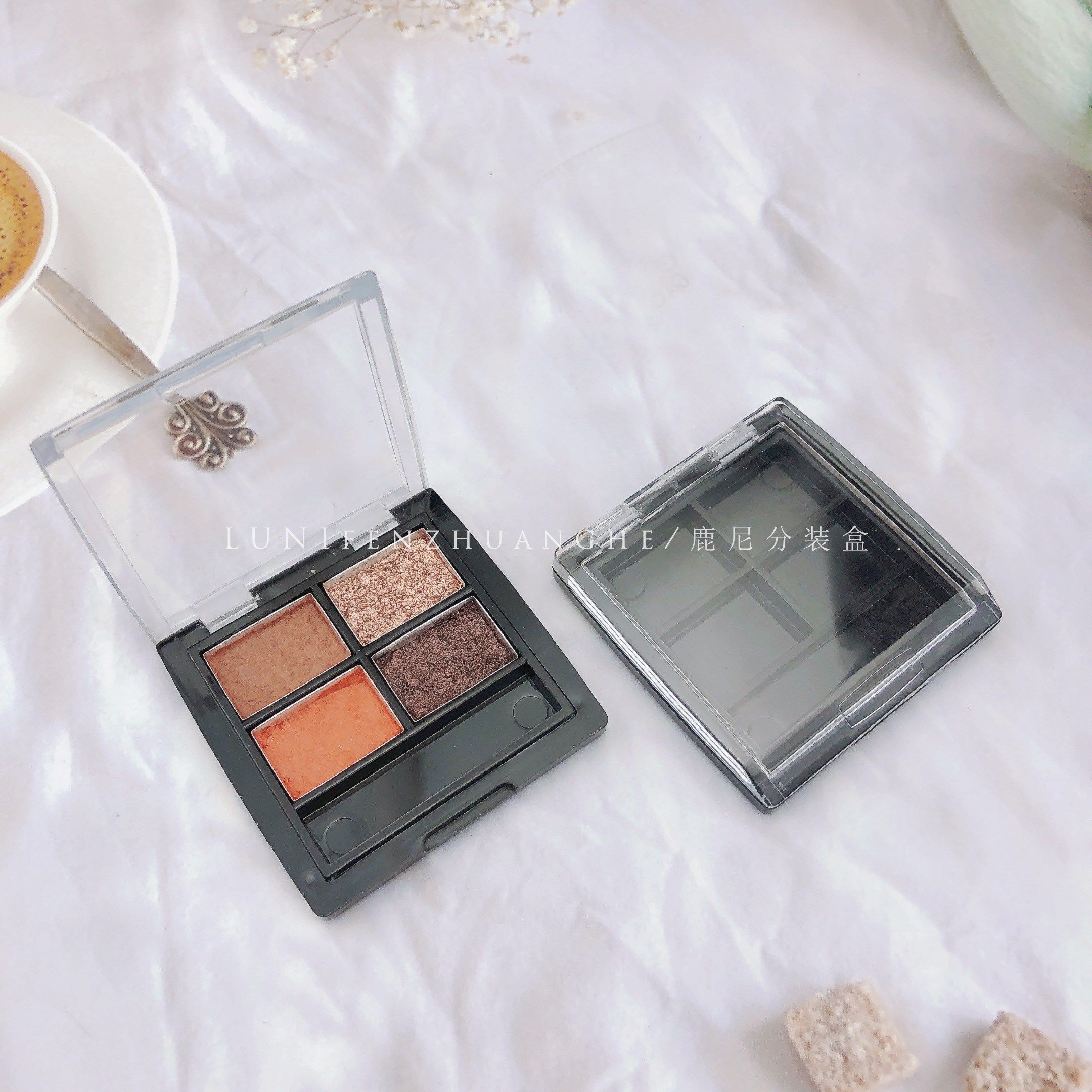 📚 TF四色眼影盒四格分装盒方形腮红透明盒3*ce小样试色压盘4孔空盒