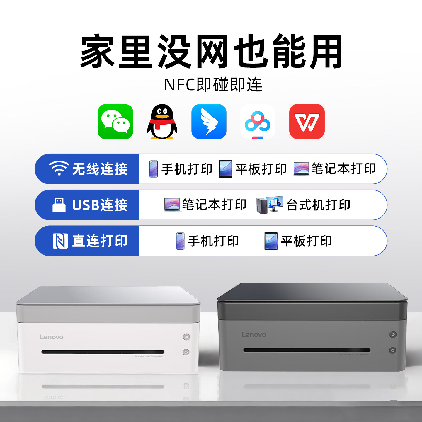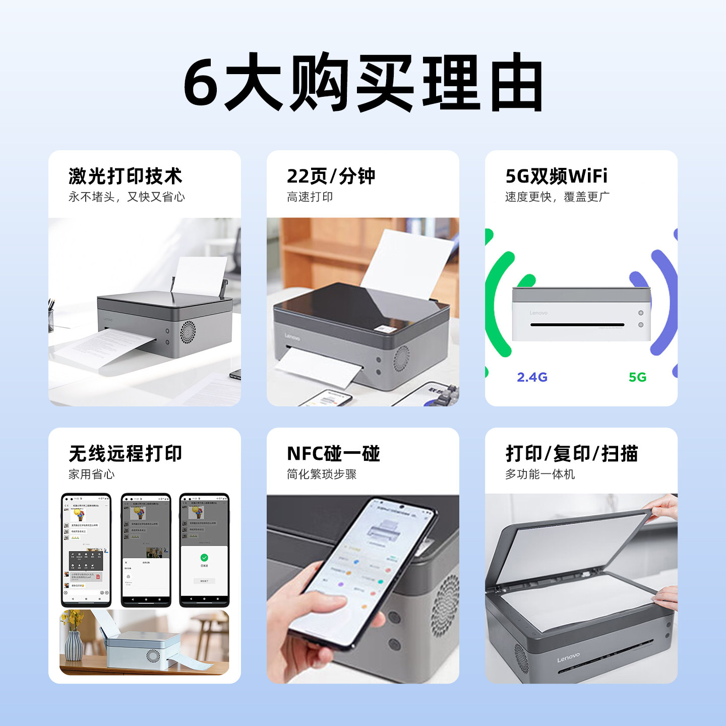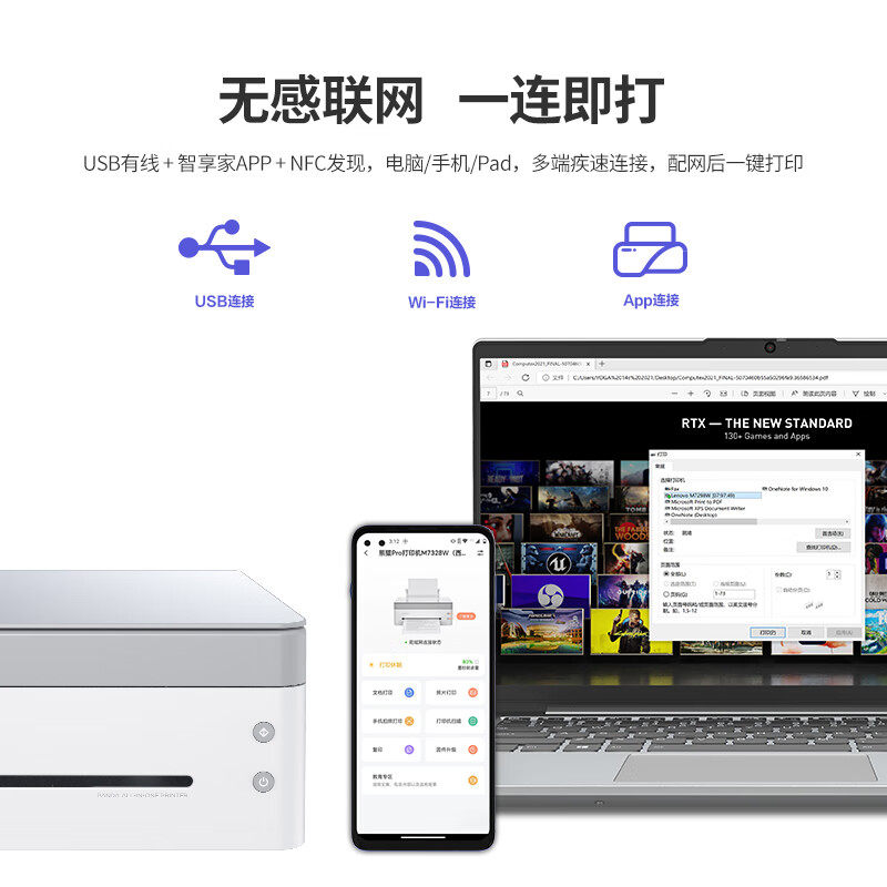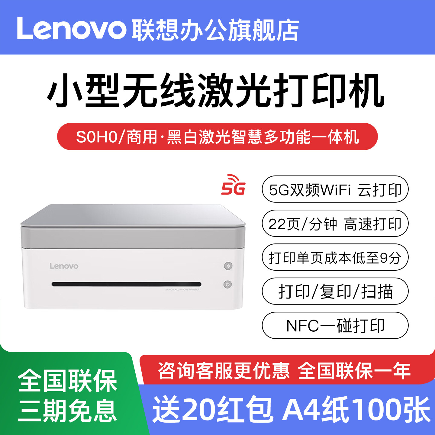 📚 联想熊猫小新无线激光打印机家用小型复印一体机办公扫描三合一黑白复印件学生作业A4手机M7328W/M7398W