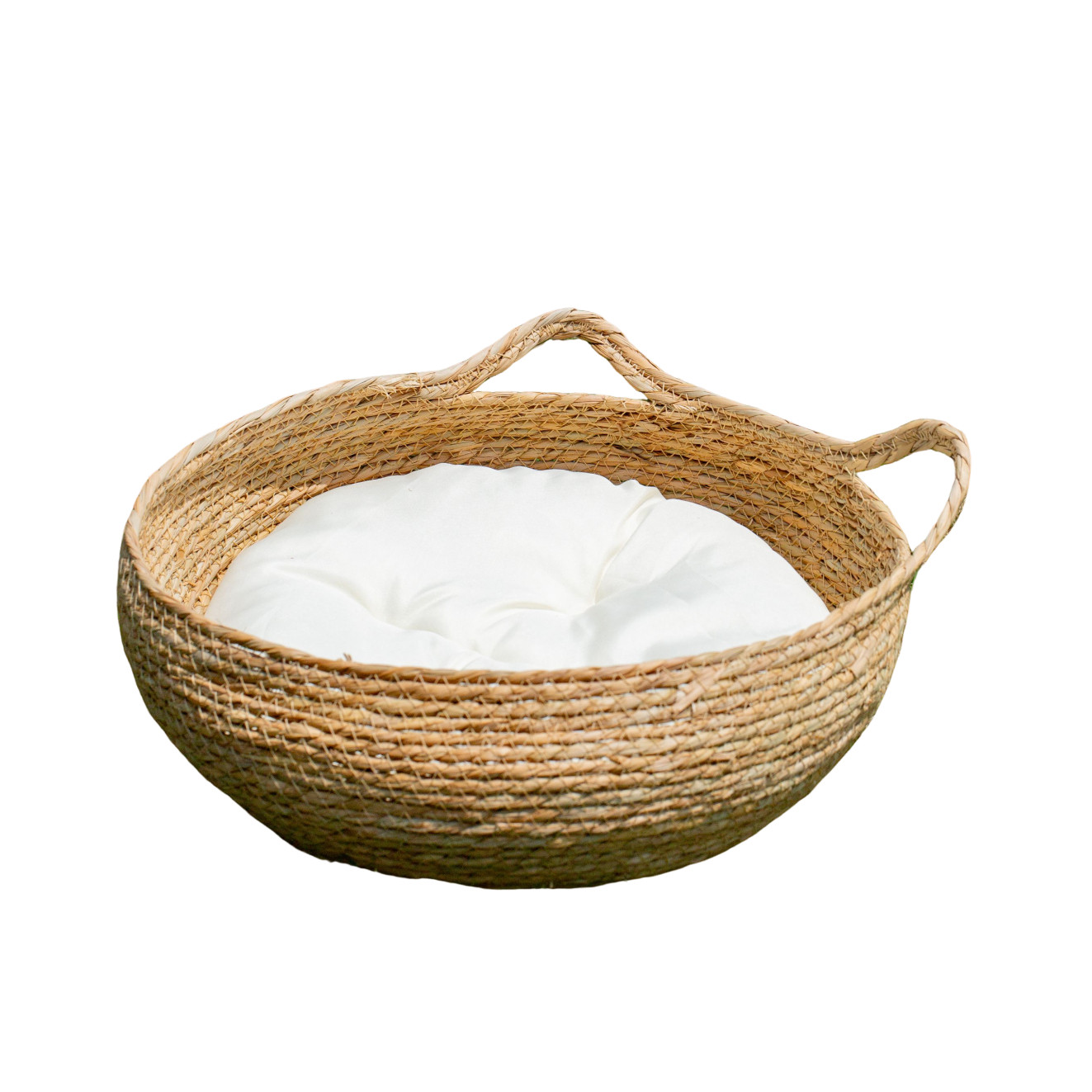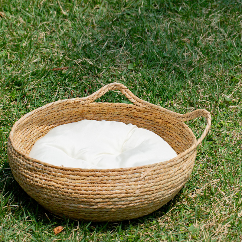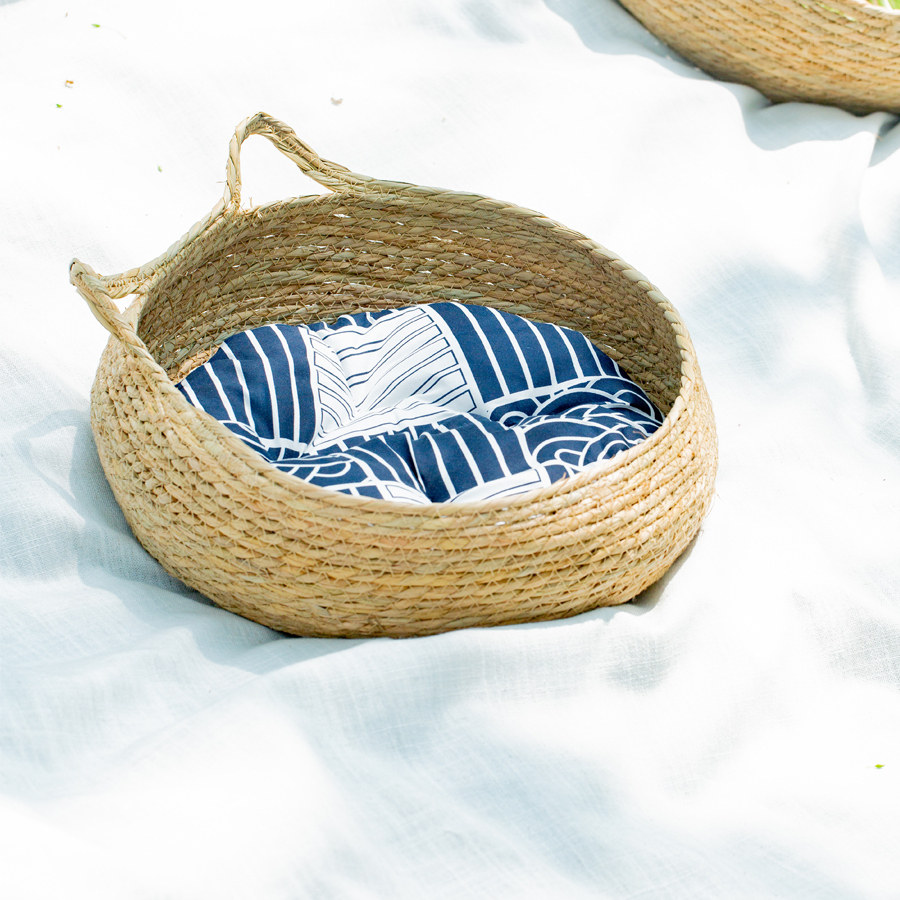 📚 猫窝自然草编藤编收纳筐收纳篮日系猫咪宠物草窝ins四季凉窝垫子