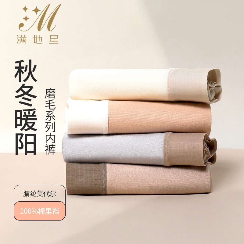 📚 秋冬款磨毛内裤女款腈纶莫代尔中高腰加长底档透气无痕女士三角裤