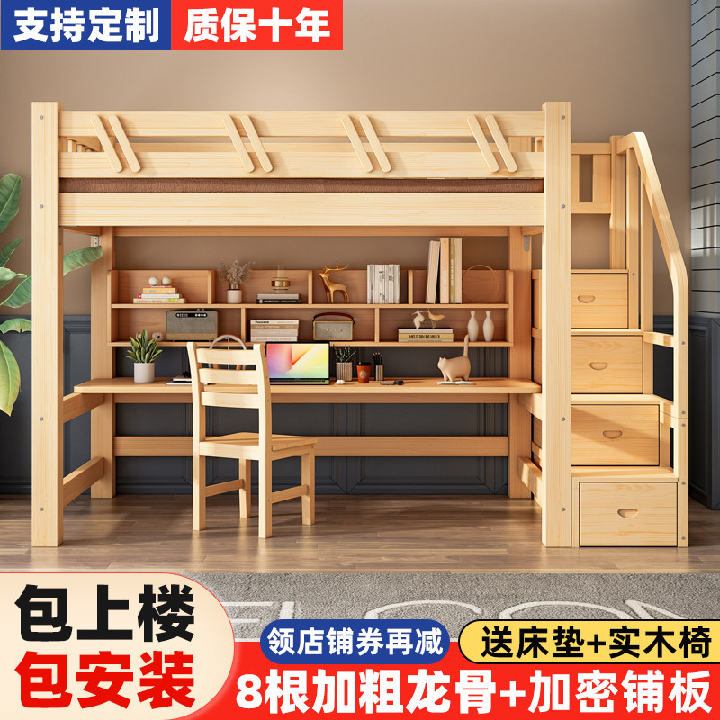 📚 上床下桌实木高架床多功能组合小户型高低儿童上下铺书桌衣柜一体