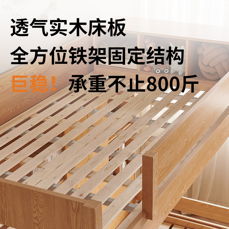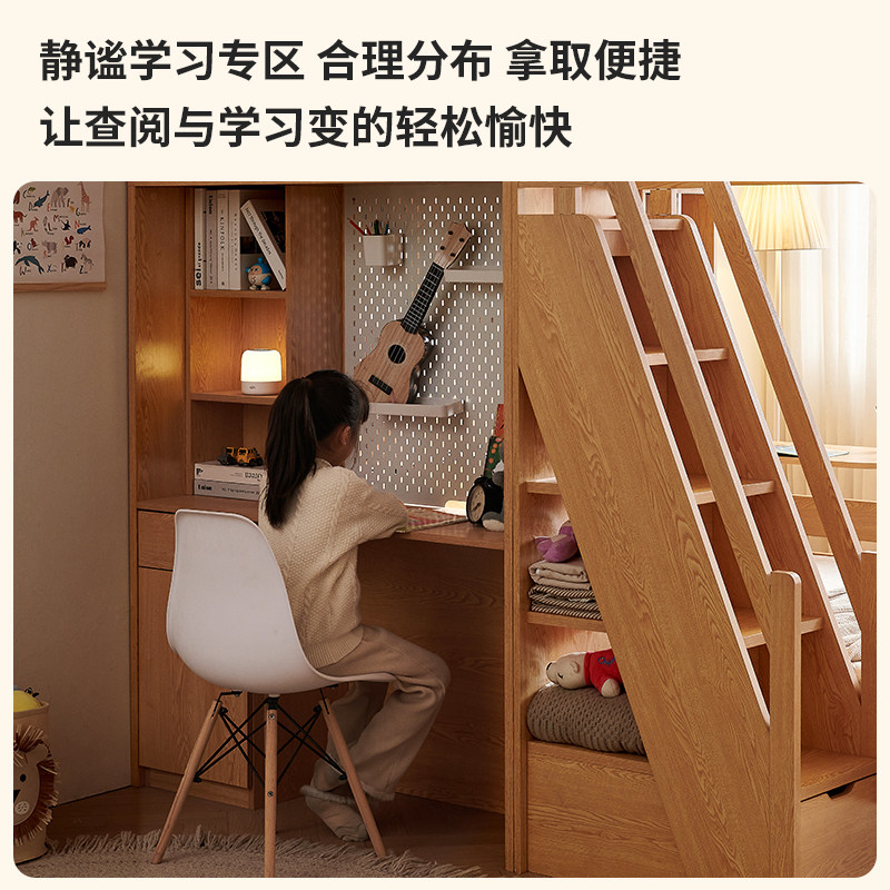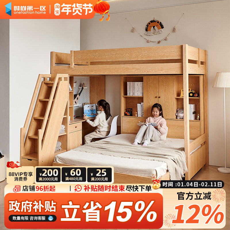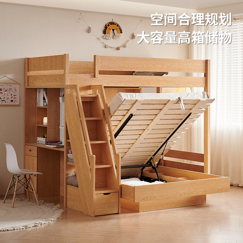 📚 实木交错式上下小户型多功能带书桌衣柜高低两层双层姐弟双人床