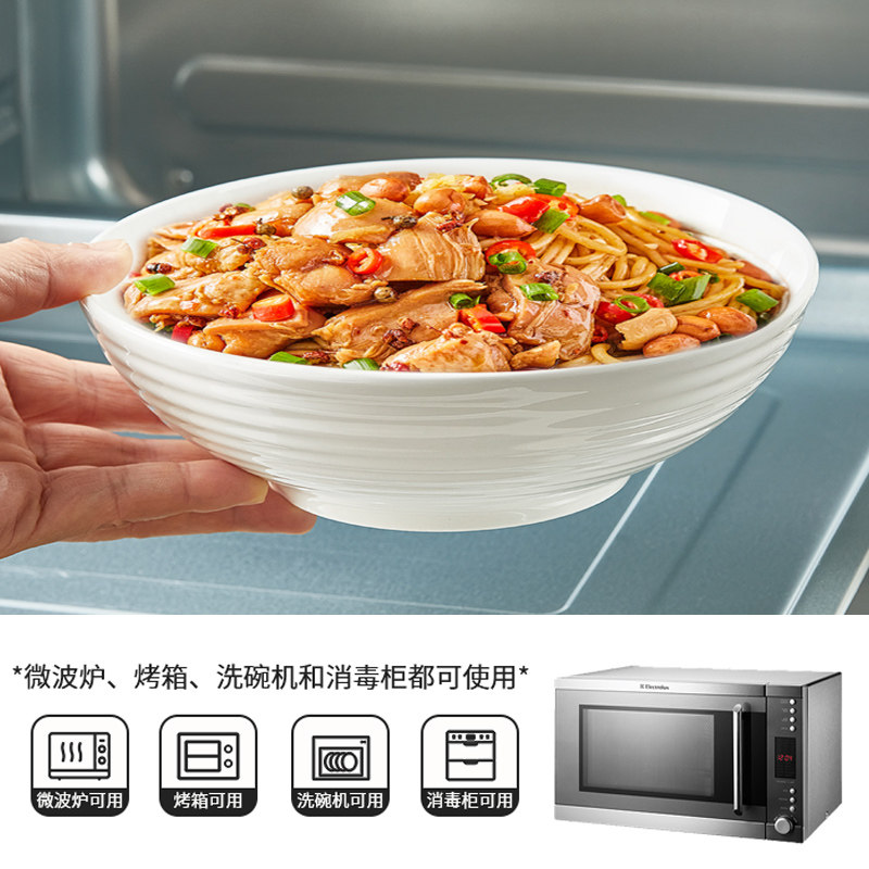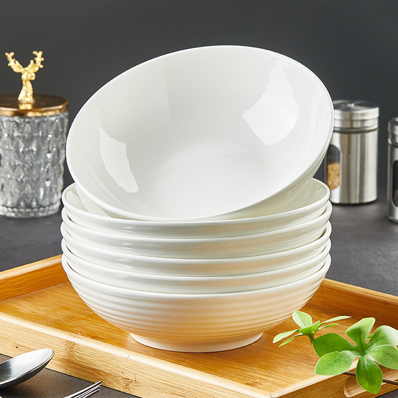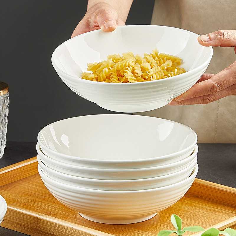 📚 纯白陶瓷大碗家用面碗饭店蒸菜碗蒸蛋碗7寸大号浅碗沙拉水果海碗