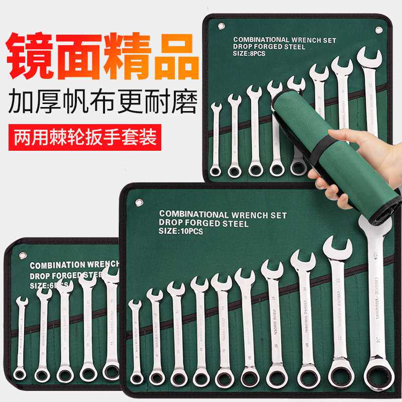 📚 梅花开口棘轮套装12件套快速棘轮扳手家用组套镜面镀铬15件套两用