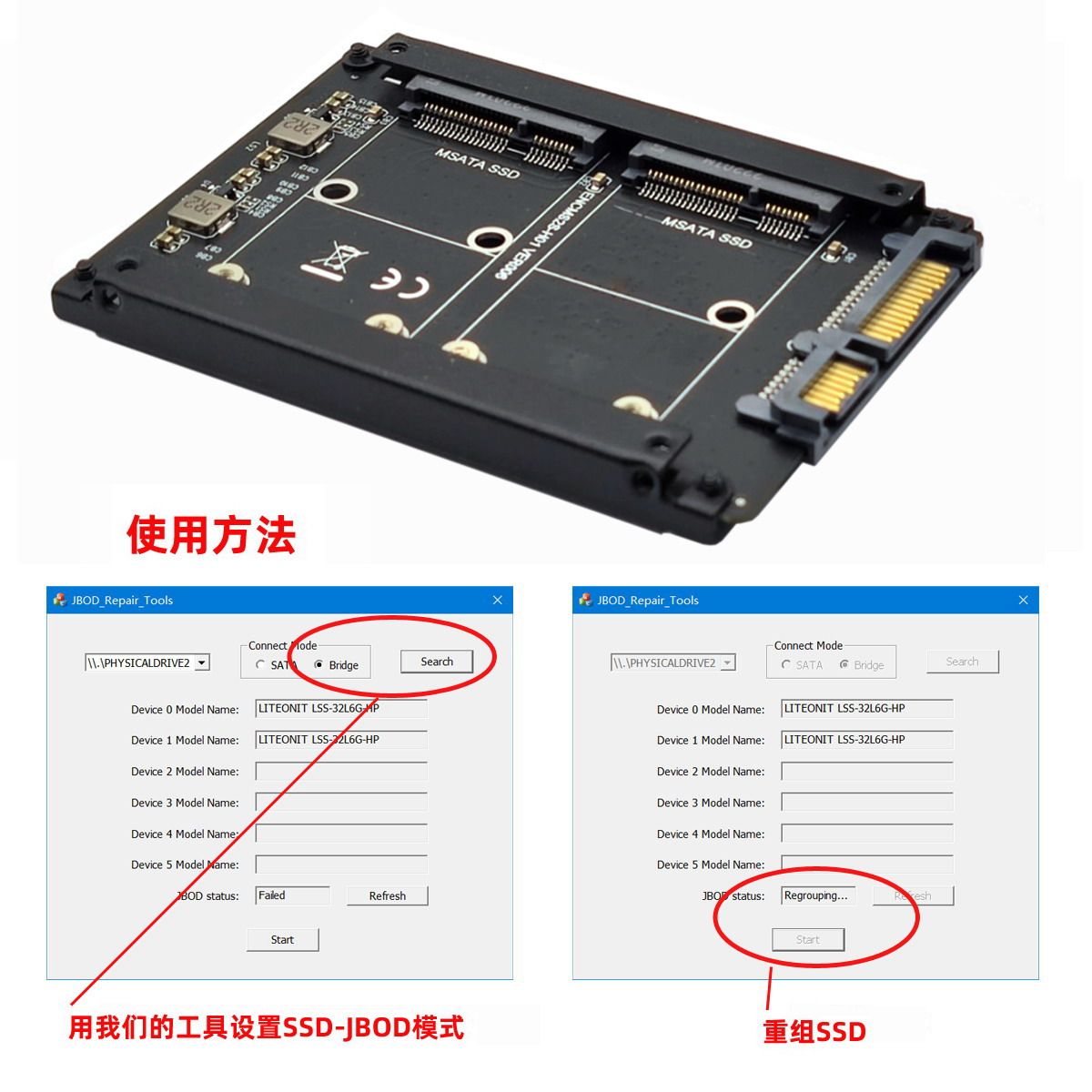 📚 FVH 双MSATA转SATA3.0硬盘盒扩展卡SSD固态转6G JBOD接口minSATA