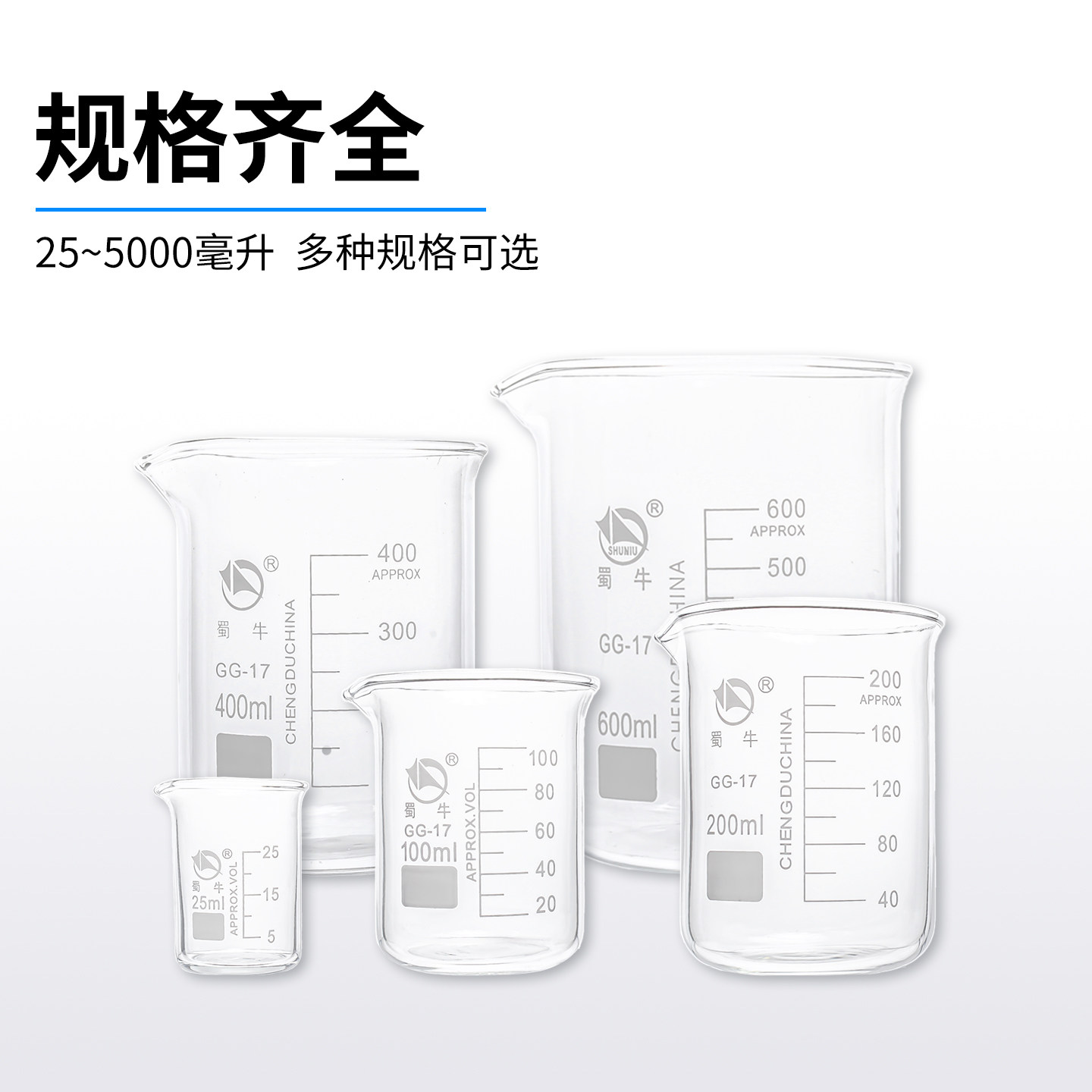 📚 蜀牛玻璃烧杯50 500ml带刻度器材高低型烧杯高硼硅加厚化学器皿量杯