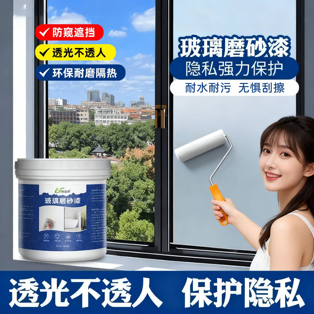 📚 水性磨砂玻璃漆办公室浴室卫生间透光不透人防窥遮挡卫生间门窗
