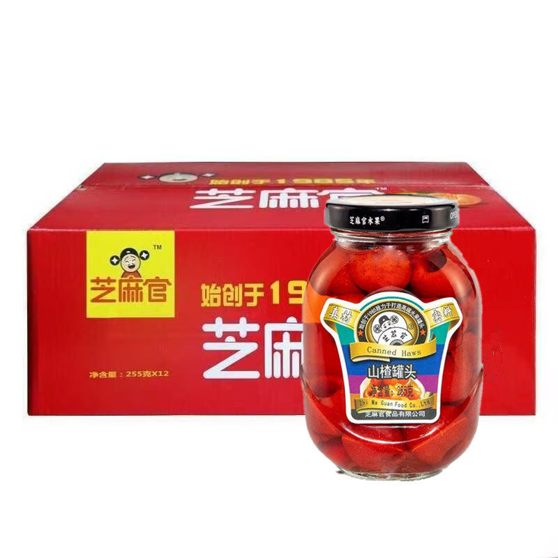 📚 芝麻官山楂罐头255g*12瓶整箱装新鲜果肉糖水办公休闲下午茶零食