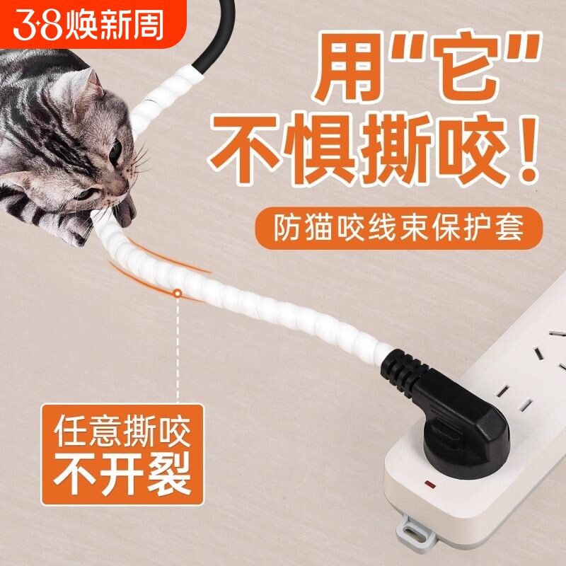 📚 防猫咬线保护猫咪咬电线数据网线套缠绕神器防老鼠包线管电源线