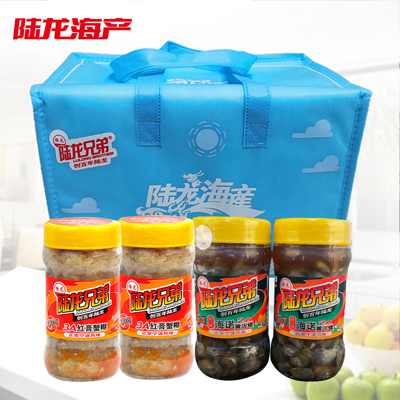 📚 陆龙兄弟特色礼包红膏蟹糊+海诺黄泥螺组合套餐海鲜年货礼盒1.2Kg