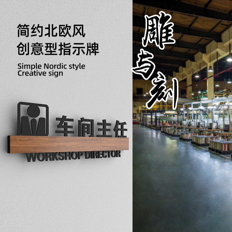 📚 3D镂空厂长室门牌工厂化验室标识牌生产车间主任办公室部门科室牌制作创意包装研发部自粘标牌定制标识指示牌
