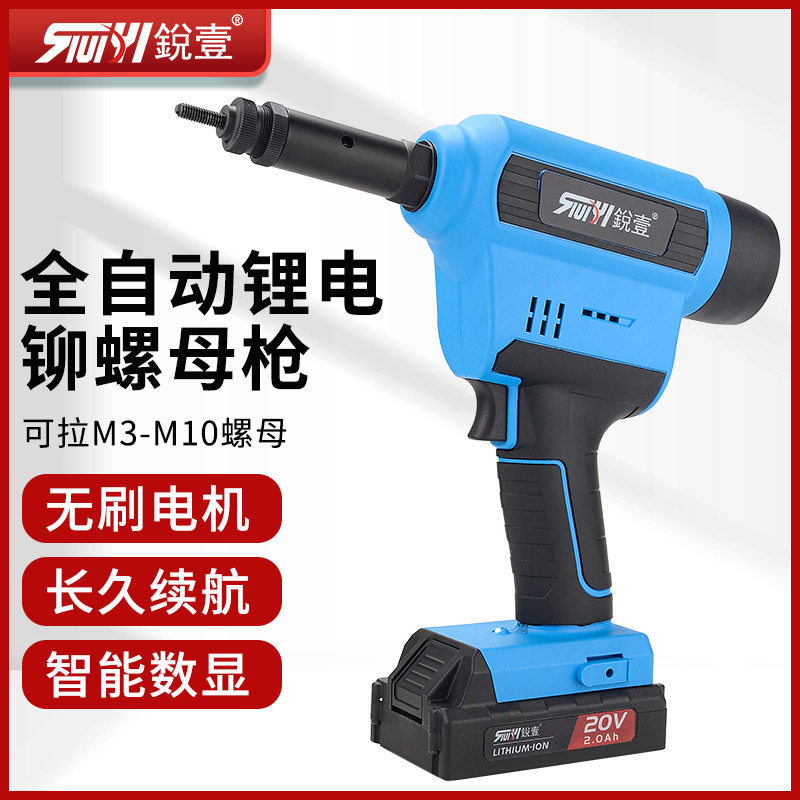📚 锐壹全自动电动拉铆螺母枪计数充电拉铆枪数显不锈钢拉帽枪E8860