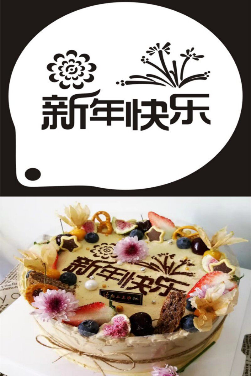 📚 3寸新年快乐喷花模 咖啡拉花 蛋糕千层印花模 奶茶撒粉模具