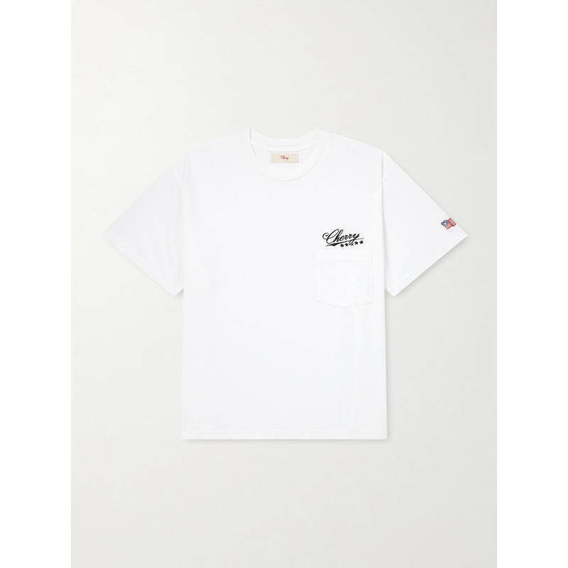 📚 Cherry Los Angeles 男士 衬衫 Five 星星Logo刺绣嵌花棉针织T恤