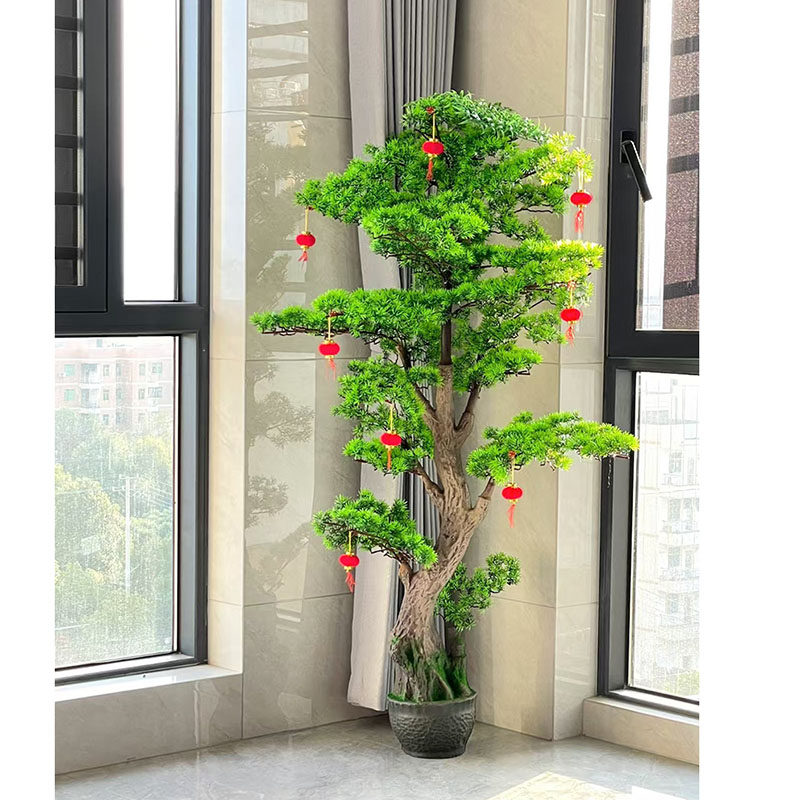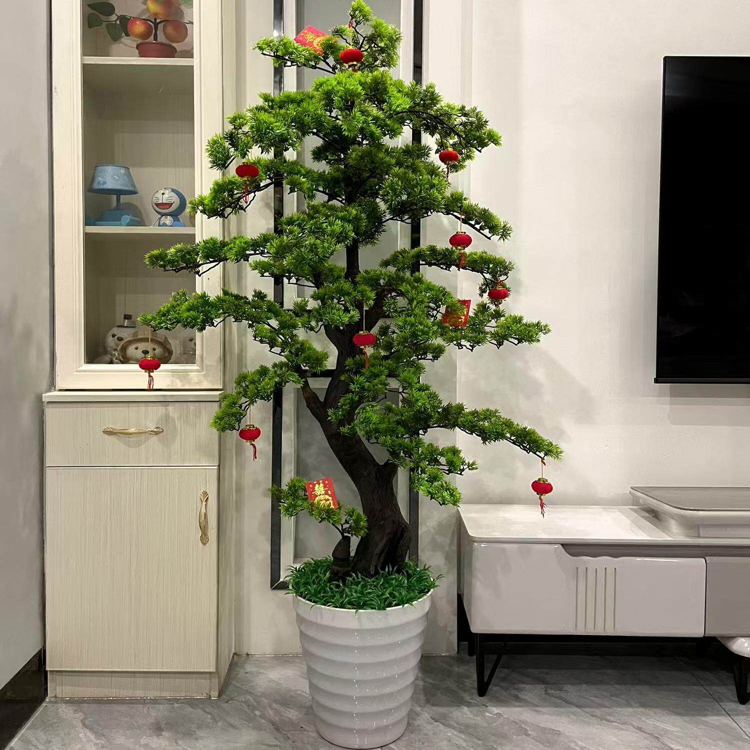 📚 室内仿真迎客松盆栽居家客厅玄关大型绿植室内装饰景观假禅意摆件