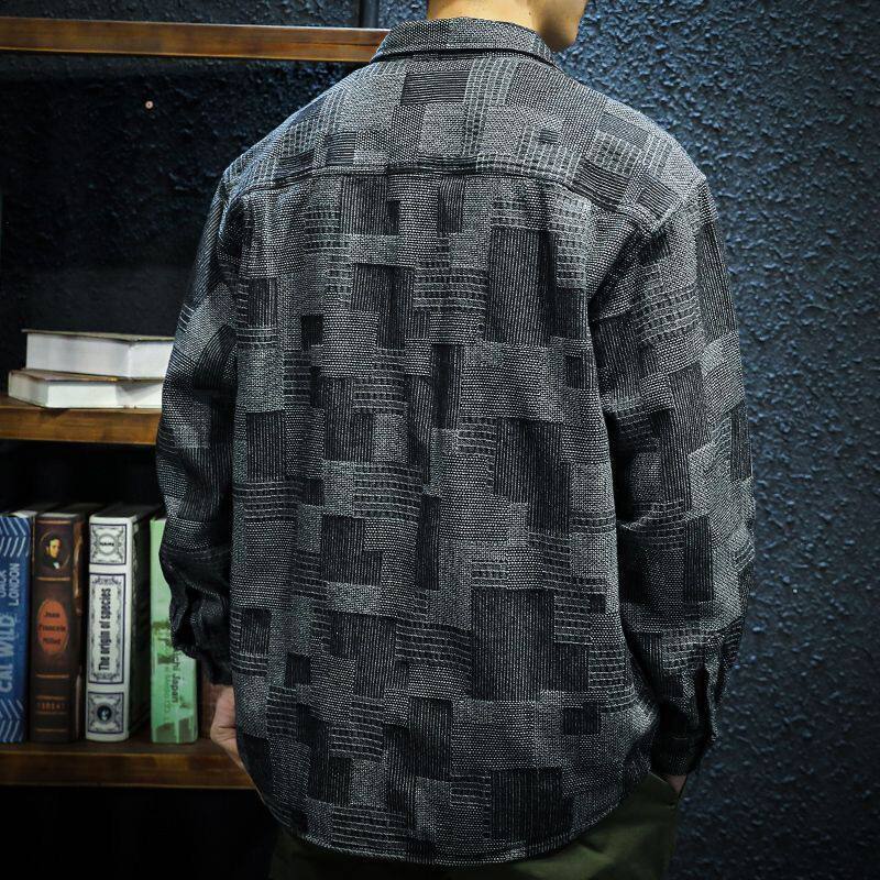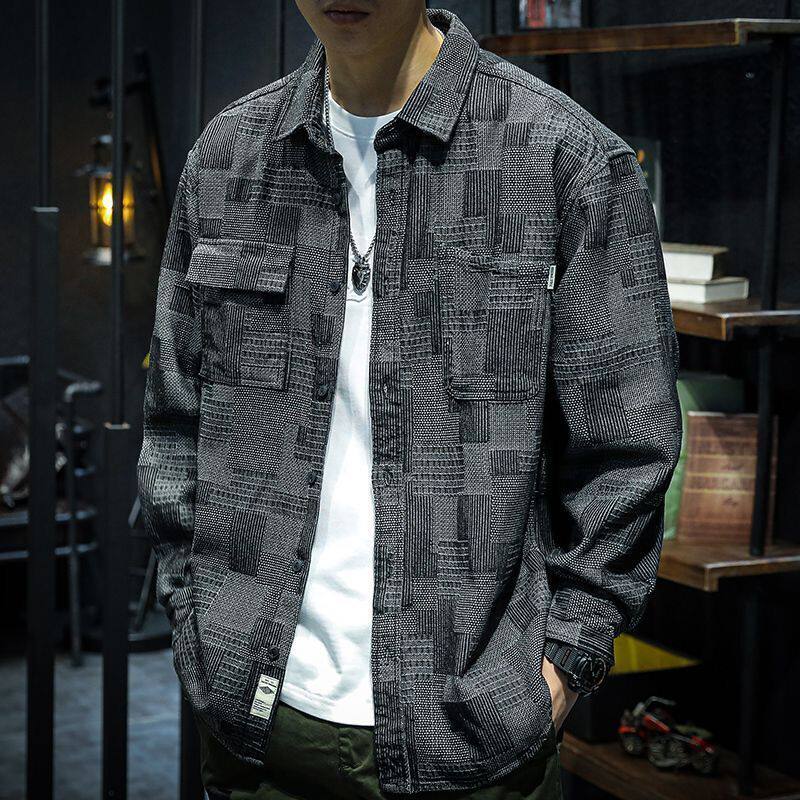 📚 衬衫外套男高级感格子美式牛仔衬衣男长袖宽松痞帅日系工装上衣服