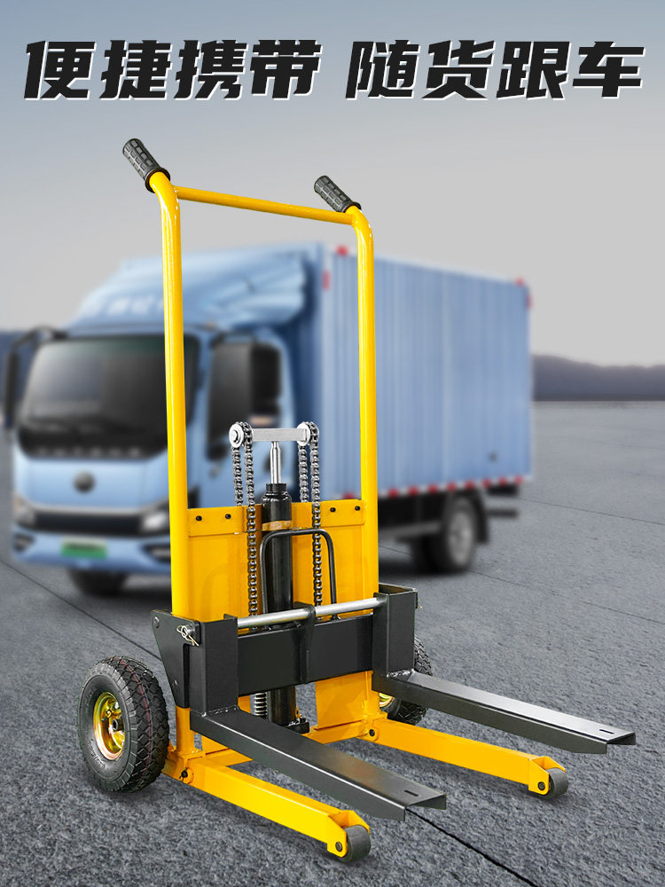 📚 微型叉车手动液压堆高车轻便小型升降搬运升高车家用可折叠可拆卸
