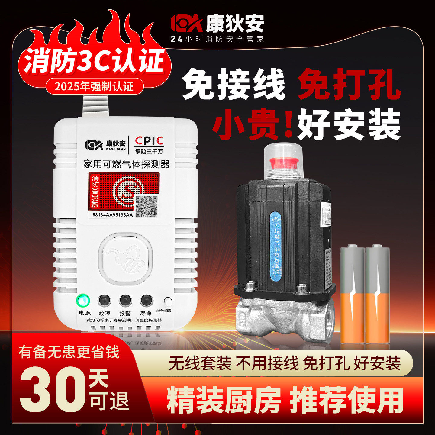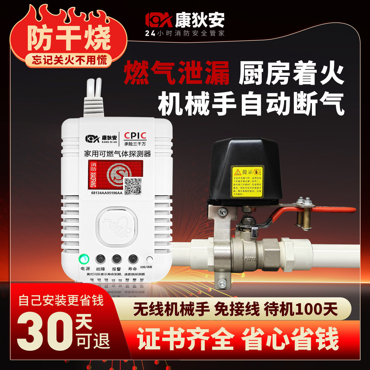 📚 天然气报警器防泄漏防干烧家用无线切断阀3C认证套装免接线免打孔