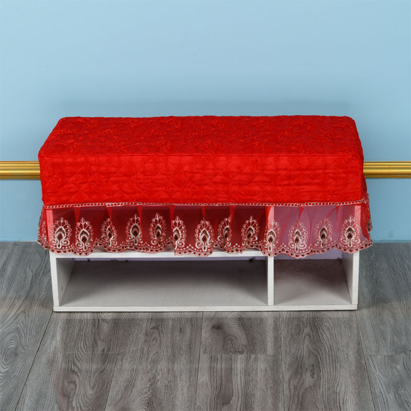📚 新婚红色蕾丝凳罩定制套家用钢琴凳套换鞋布艺化妆凳套罩坐垫椅垫