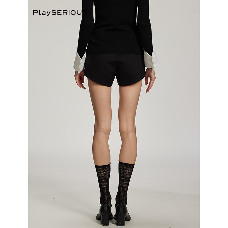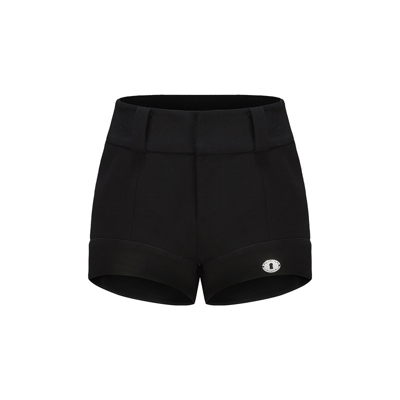 📚 LACERTA 秋季新款黑色百搭弧形裤脚弹力短裤女时尚百搭显瘦休闲裤