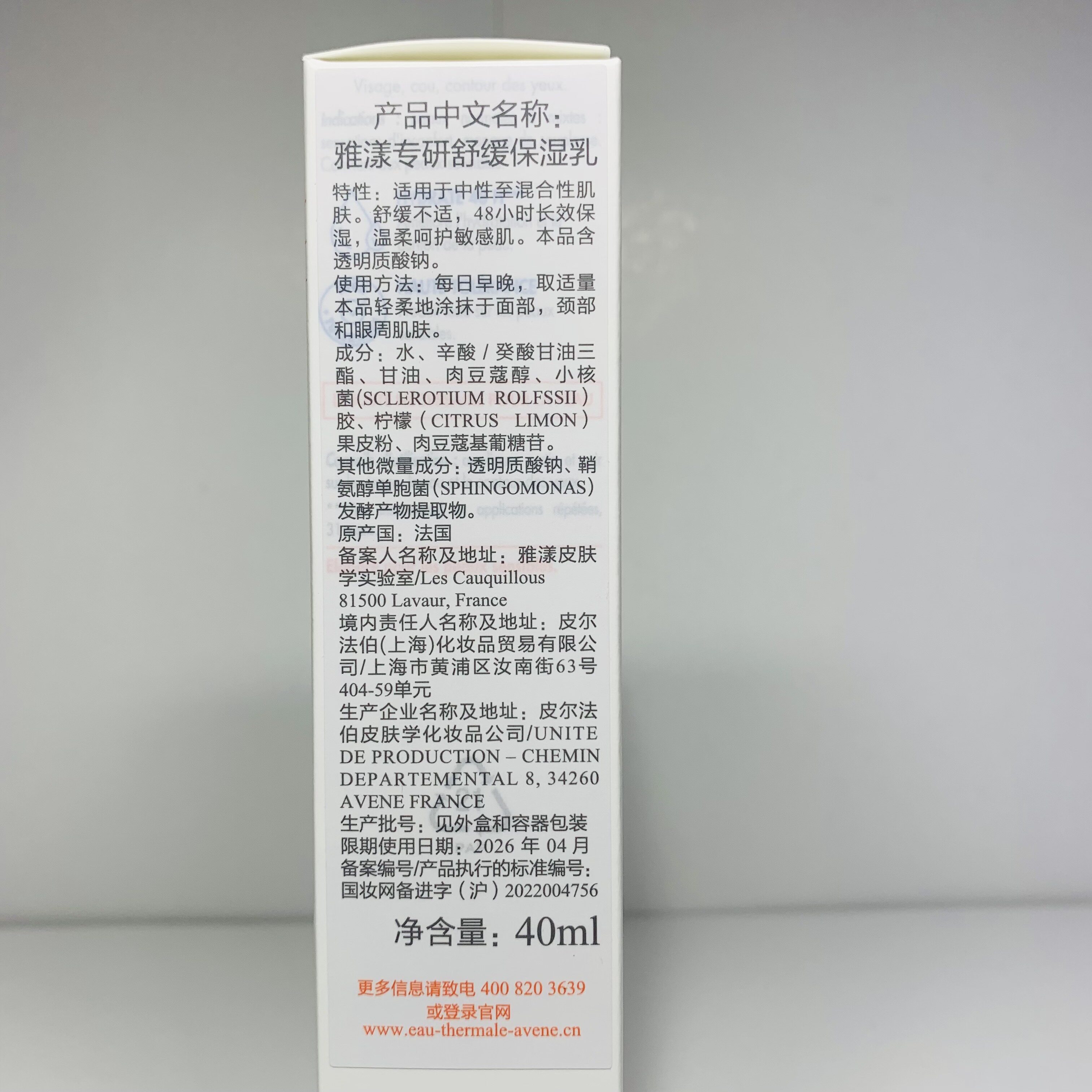 📚 国内专柜雅漾专研舒缓保湿乳40ML 维稳清爽乳液新特护乳27-05