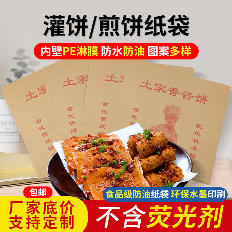 📚 包邮 土家香酱饼袋子/土家酱香饼纸袋 小吃袋 打包袋 1000个/件