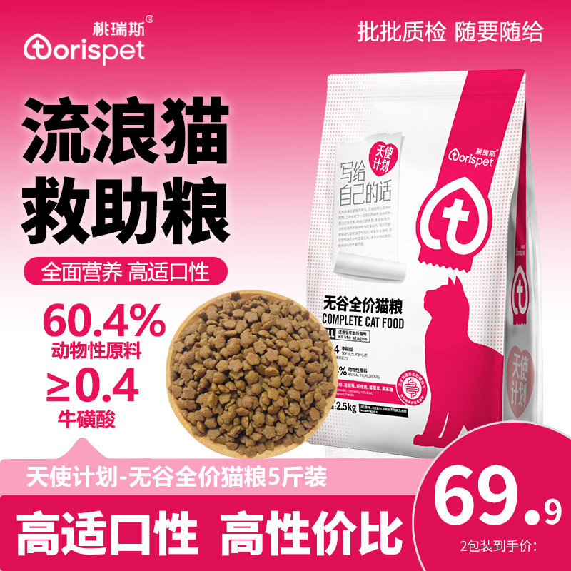 📚 【天使计划】桃瑞斯流浪猫猫粮5斤小包装便携流浪猫救助幼猫成猫