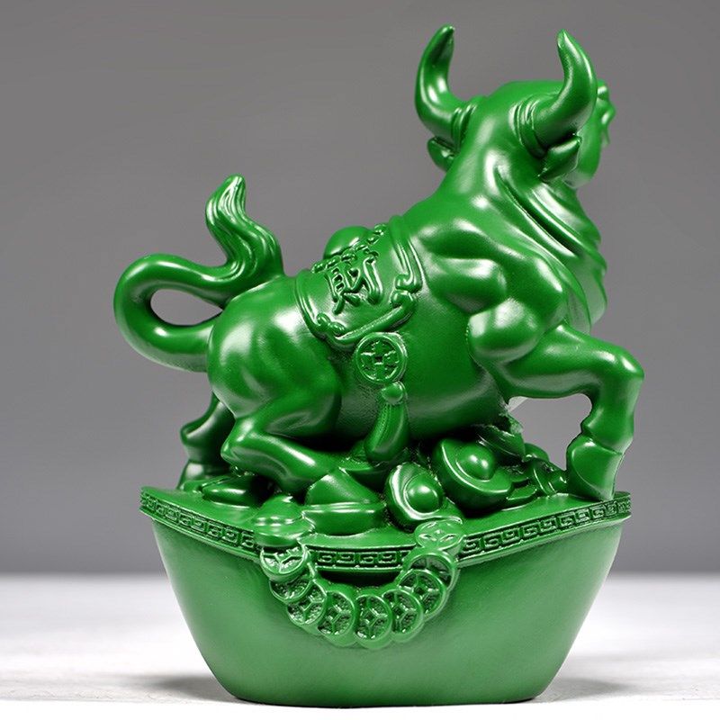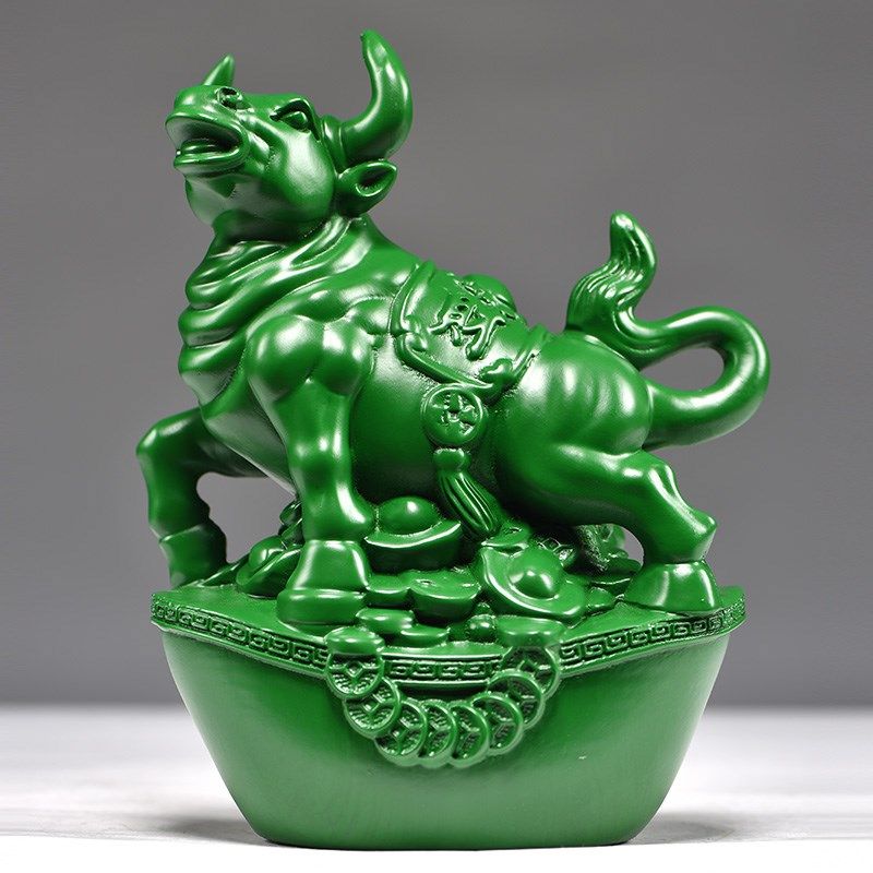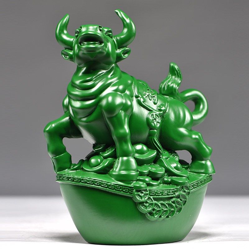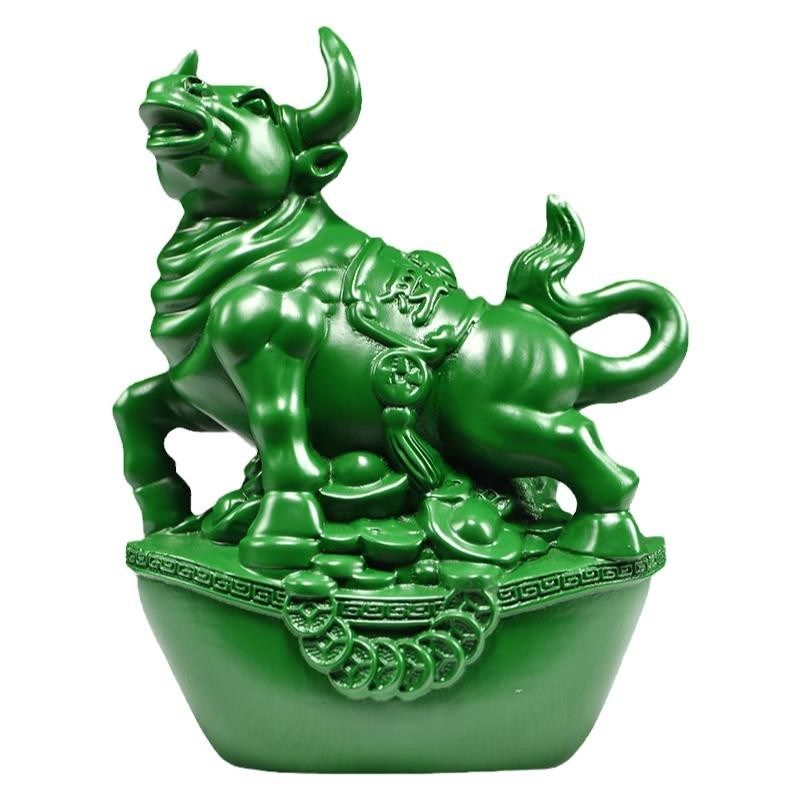 📚 绿色木雕刻牛摆件三合十二u生肖木牛工艺品家居客厅属牛装饰品送