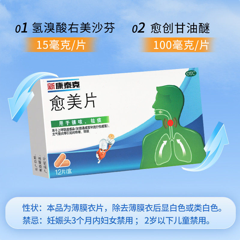 📚 新康泰克愈美片12片右美沙芬止咳化痰咳嗽进口感冒药祛痰惠菲正品