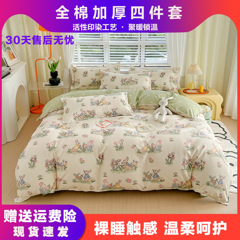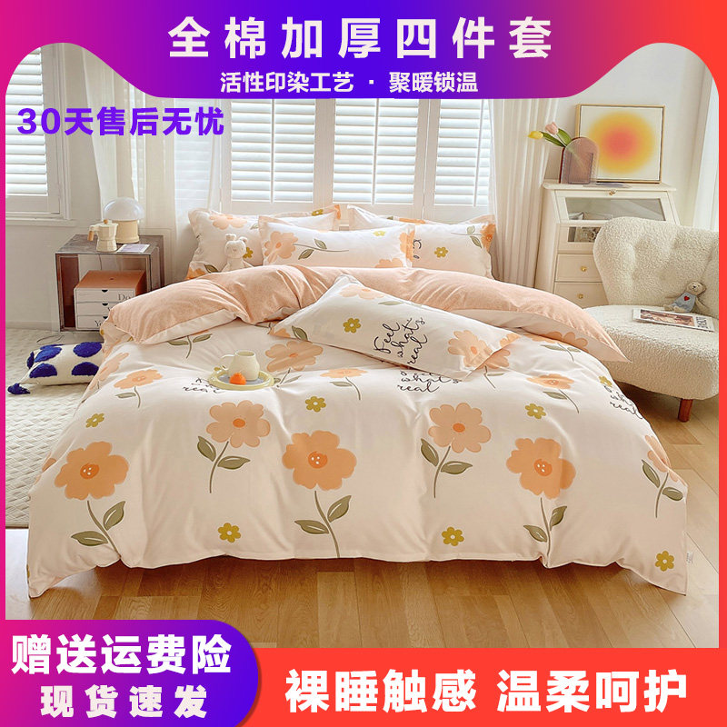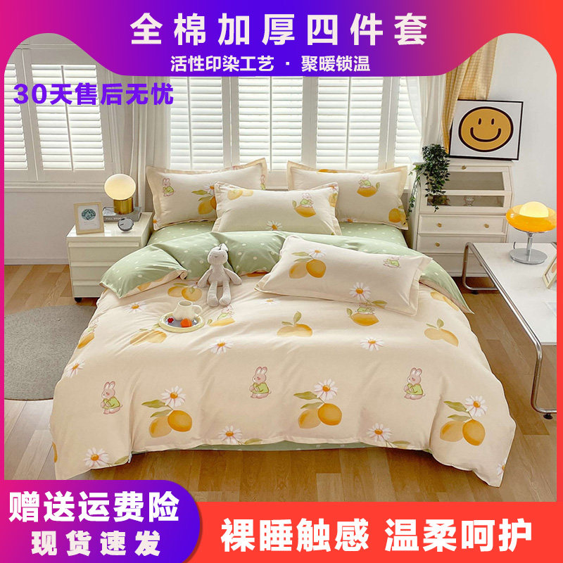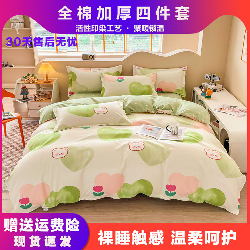 📚 南通家纺全棉四件套床上用品100%纯棉被套单双人秋冬棉三件套印花