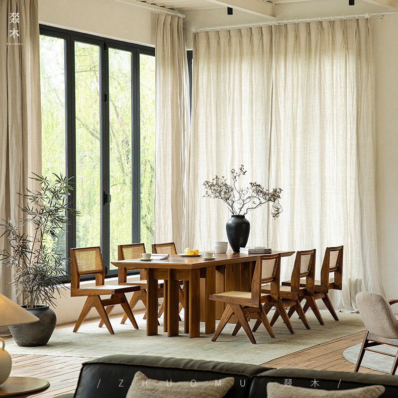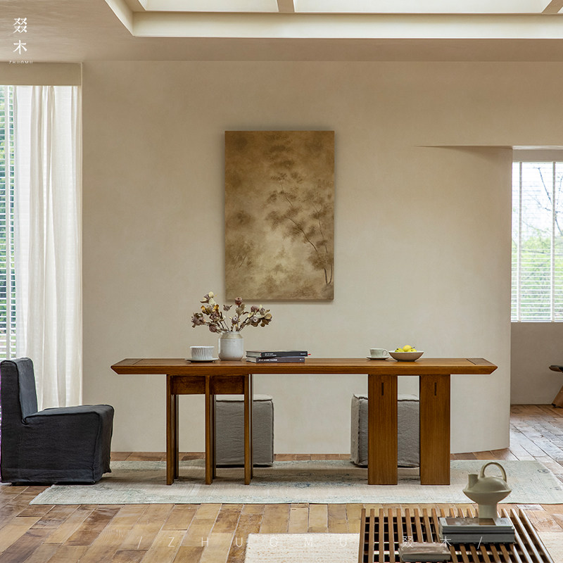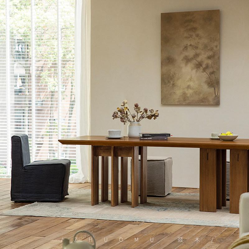 📚 叕木|多腿餐桌\实木设计师创意日式侘寂风家用长方形柚木工作桌