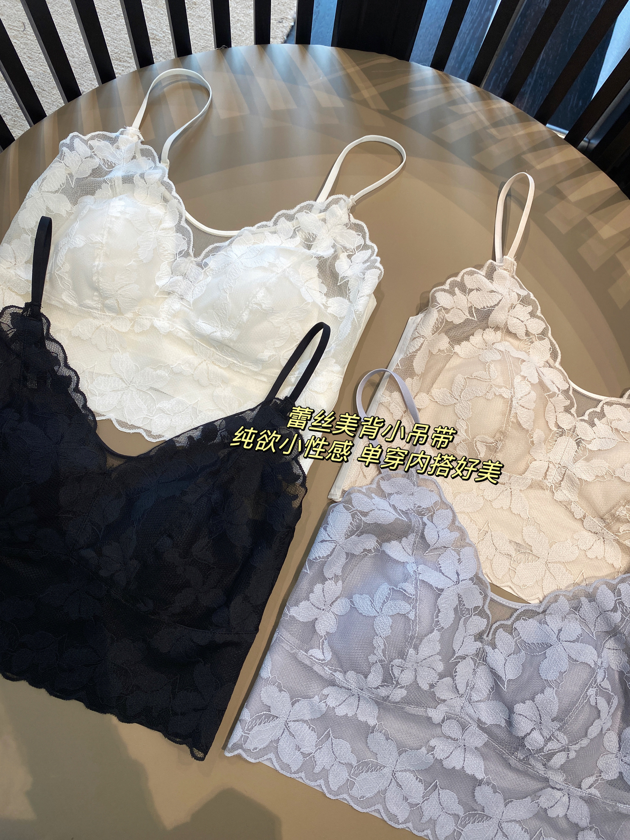 📚 AMR UU◆巨美~浪漫蕾丝小吊带舒适无痕带胸垫内衣女背心春夏新款