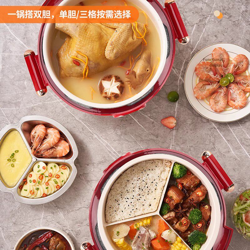 📚 韩派三格电压力锅家用多功能鸳鸯胆双胆分隔胆电饭煲电火锅高压锅