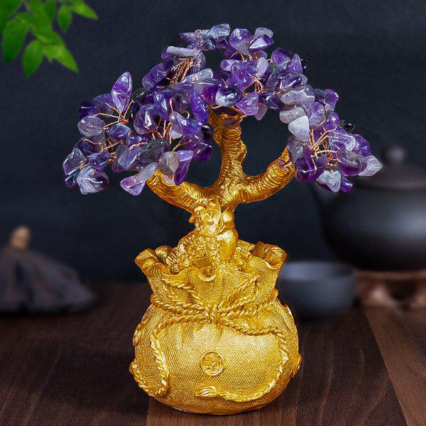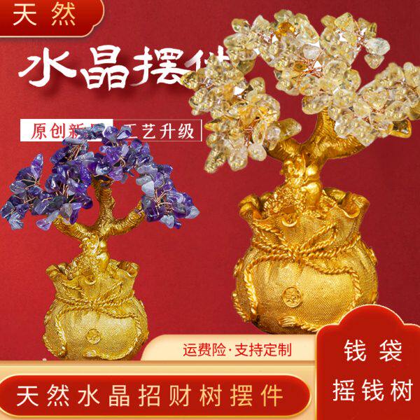 📚 黄水晶摇钱树摆件招财酒柜装饰家居客厅玄关小发财树乔迁开业礼品
