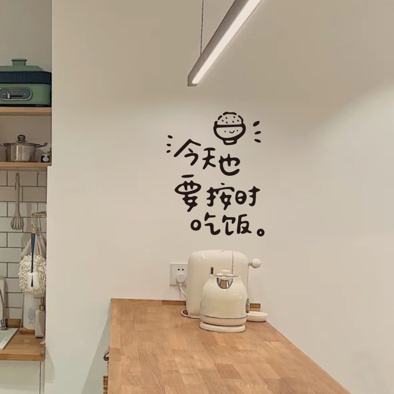 📚 ins风按时吃饭 餐厅厨房玻璃门防撞装饰 饭店背景墙布置文字贴纸