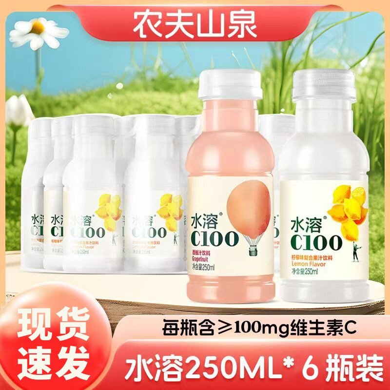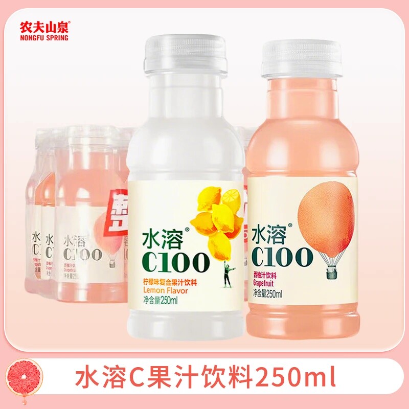 📚 水溶C100柠檬味复合果汁饮料维C250ml6/8瓶小瓶装VC西柚柠檬汁