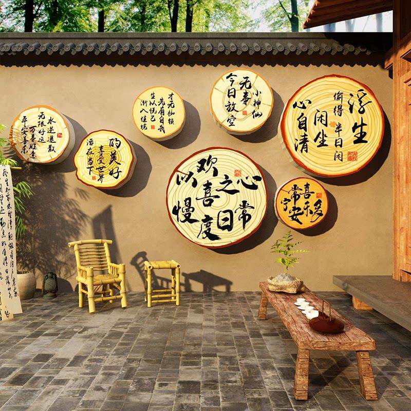 📚 网红茶室布置小庭院子造景墙面装饰民宿古风休闲 农场村户外打卡