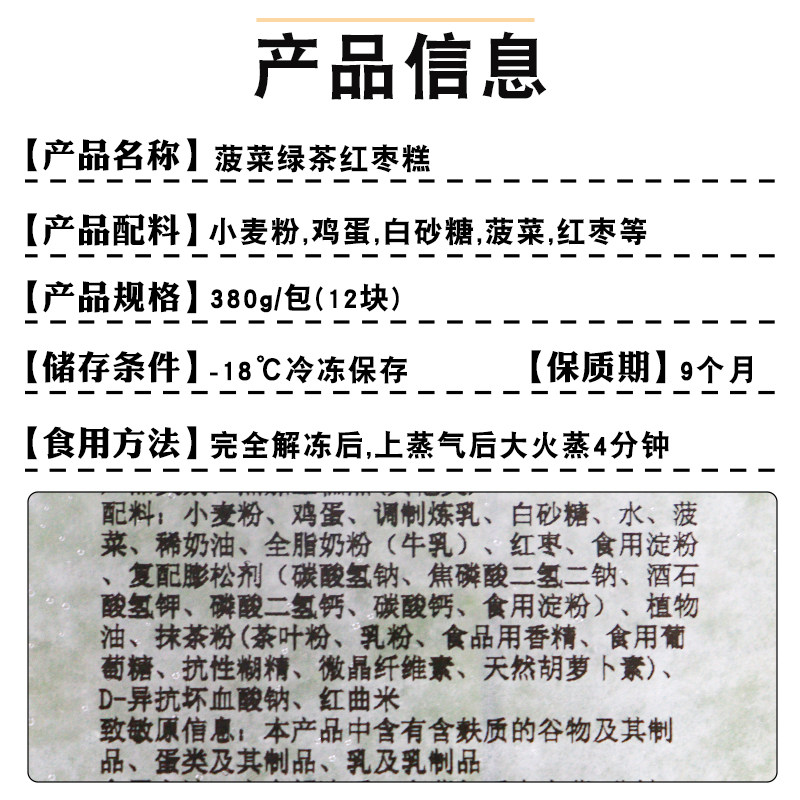 📚 日宥菠菜绿茶红枣糕380g抹茶枣泥蒸糕广式茶楼点心下午茶甜点小吃